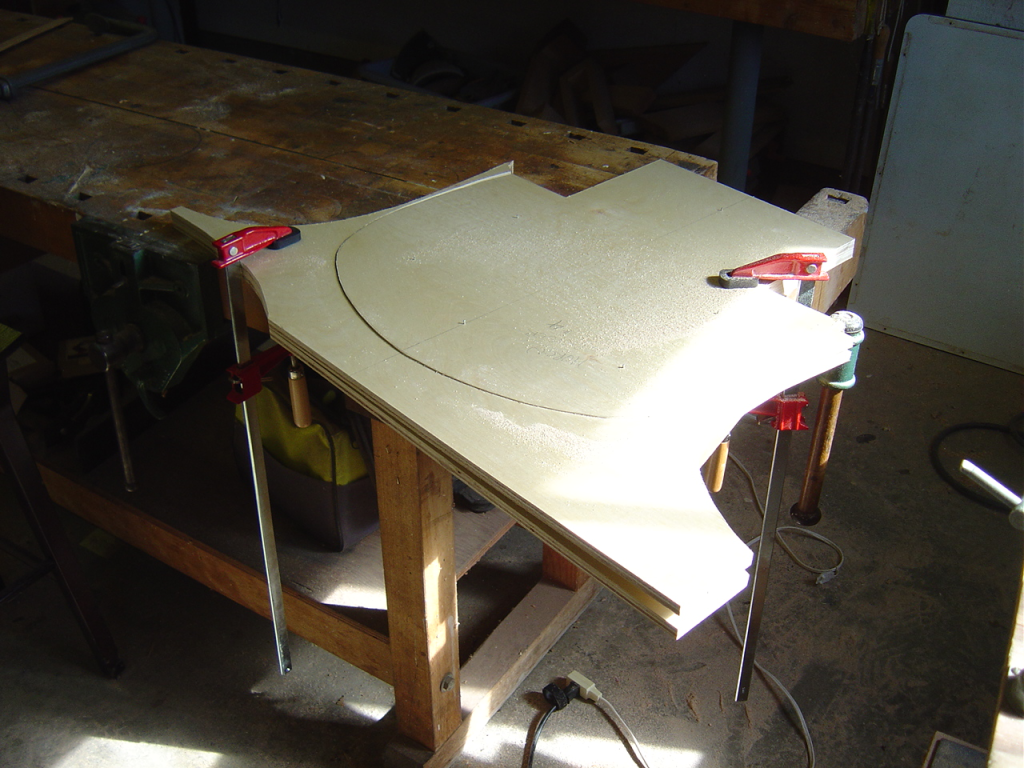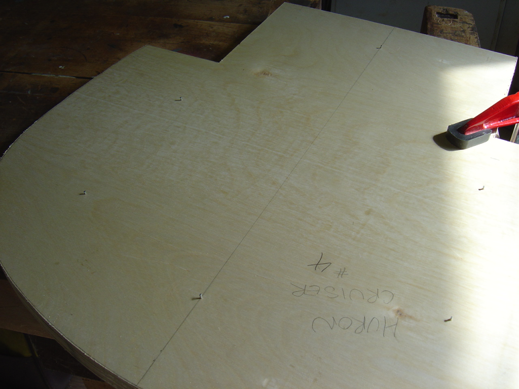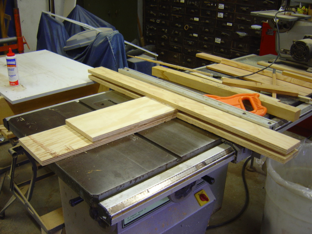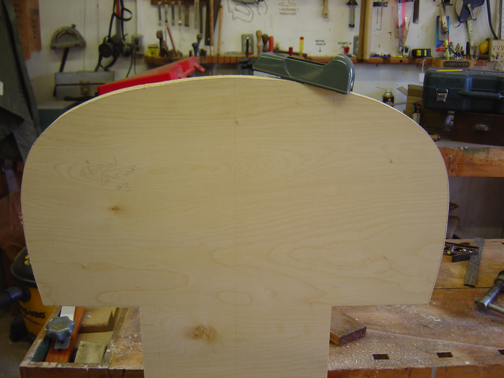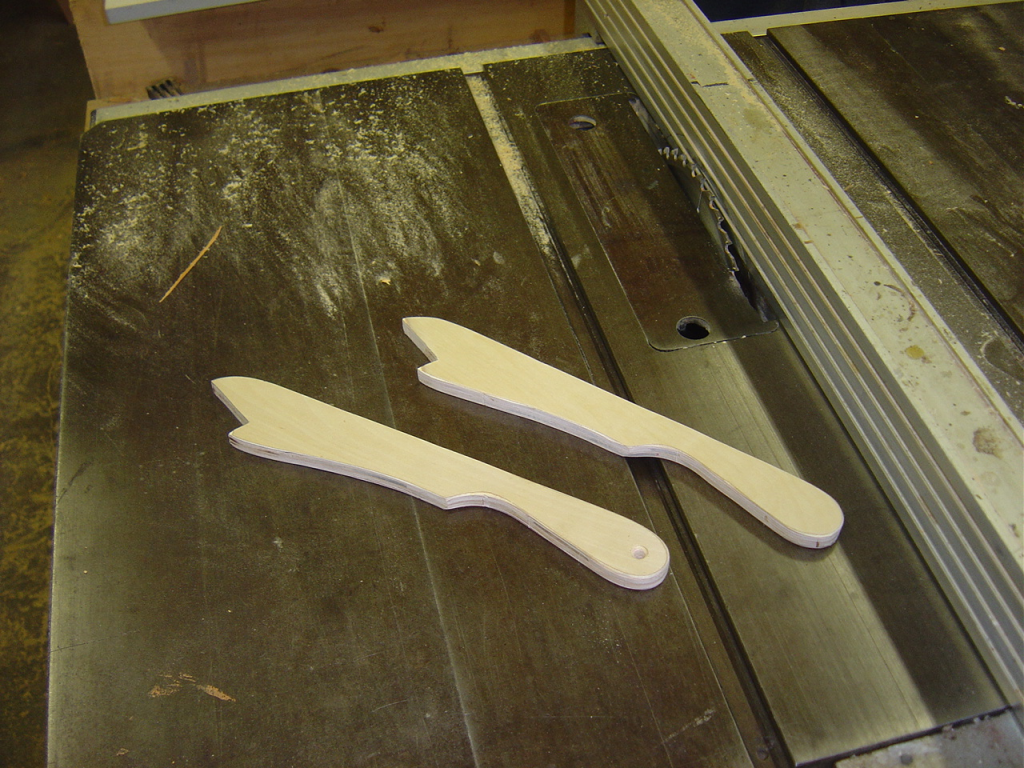 With a little bit of shop time left in the day, but not enough to start the router table frame I made up some new push sticks for the table saw. Since I have lots of odd small scraps of 1/2″ birch plywood left from the station molds of the canoe it was a good way to use some up. I used the template from Matthias at Woodgears.ca. They’re very comfortable and easy to whip up. I highly recommend them if you need to make some for yourself.