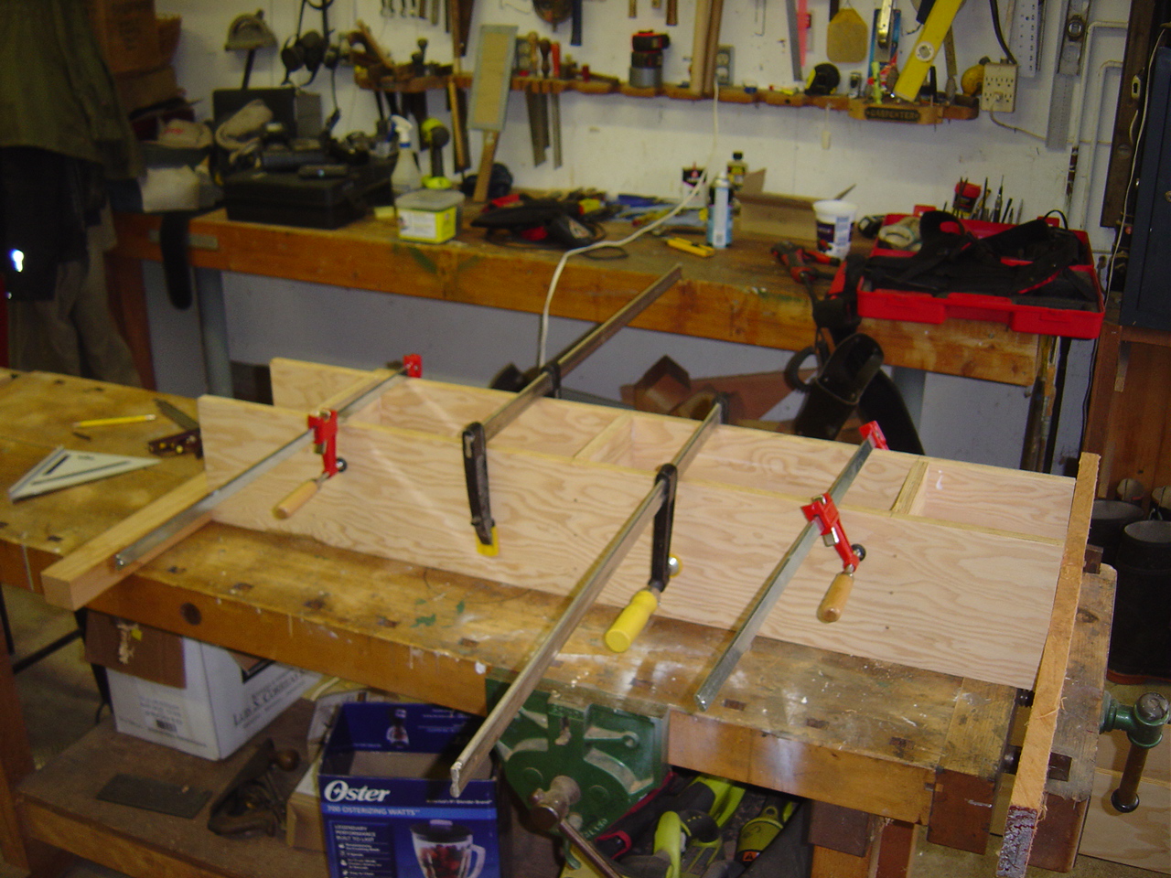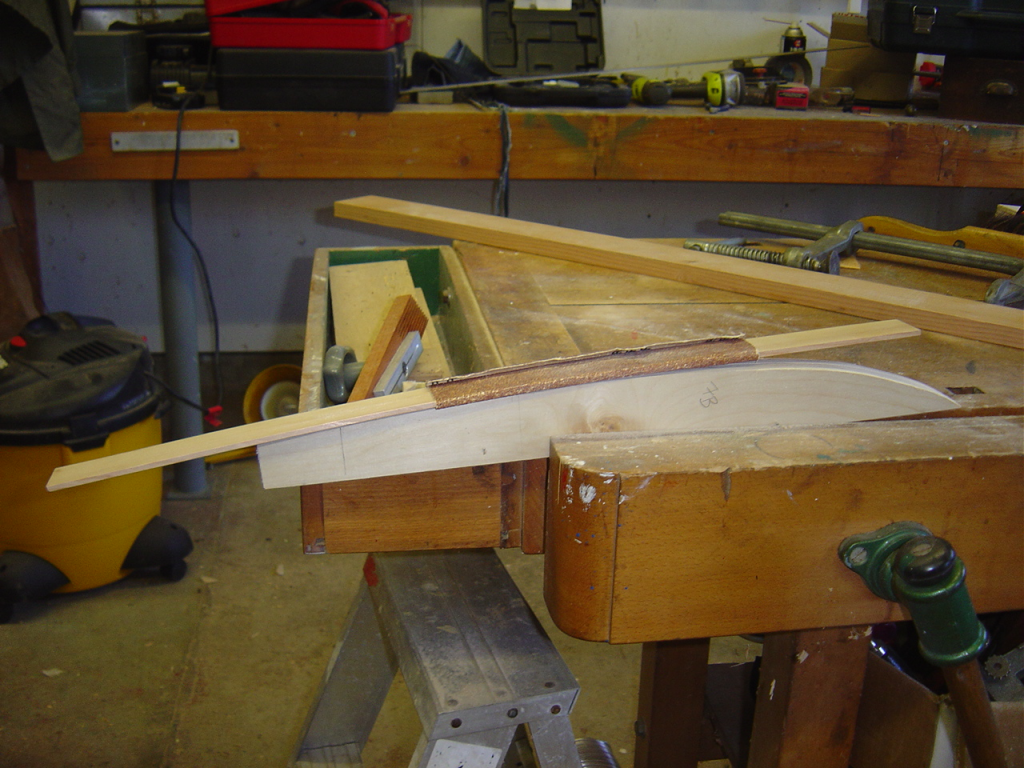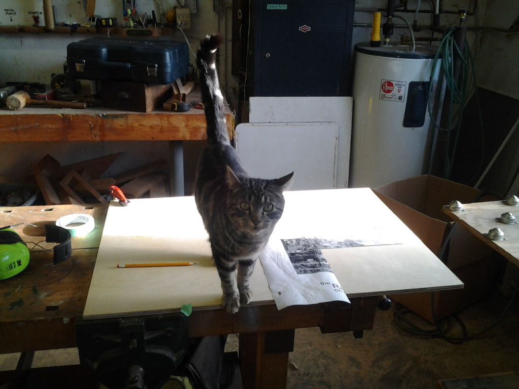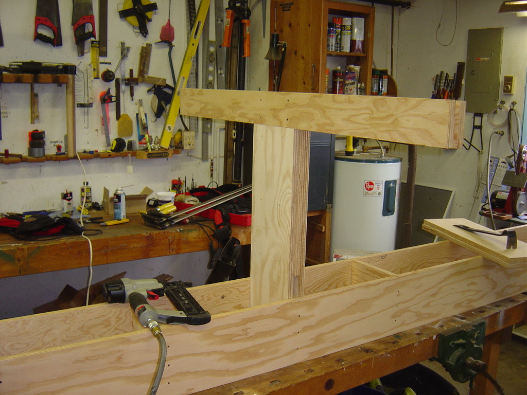 With a little bit of shop time left in the day, but not enough to start the router table frame I made up some new push sticks for the table saw. Since I have lots of odd small scraps of 1/2″ birch plywood left from the station molds of the canoe it was a good way to use some up. I used the template from Matthias at Woodgears.ca. They’re very comfortable and easy to whip up. I highly recommend them if you need to make some for yourself.