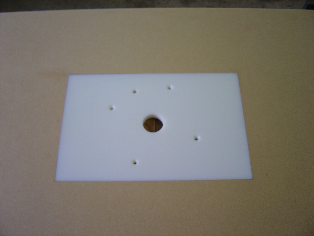 The insert is made of UHMW which machines very nicely. I would have liked to use acrylic for more rigidity, but I got this for 10 cents at the thrift store as a cutting board. Because my temporary fence has the bit groove run right through (a dado), the chips shot nicely out the back side into a pile. Something I’ll keep in mind for future fences for the more permanent table.